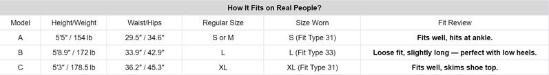 Love the material. Very work and casual friendly. Fit was perfect. Ordered a medium in dark grey. I’m 5.1 120 pds 31inseam great for heels 29inseam for tennis shoes.
